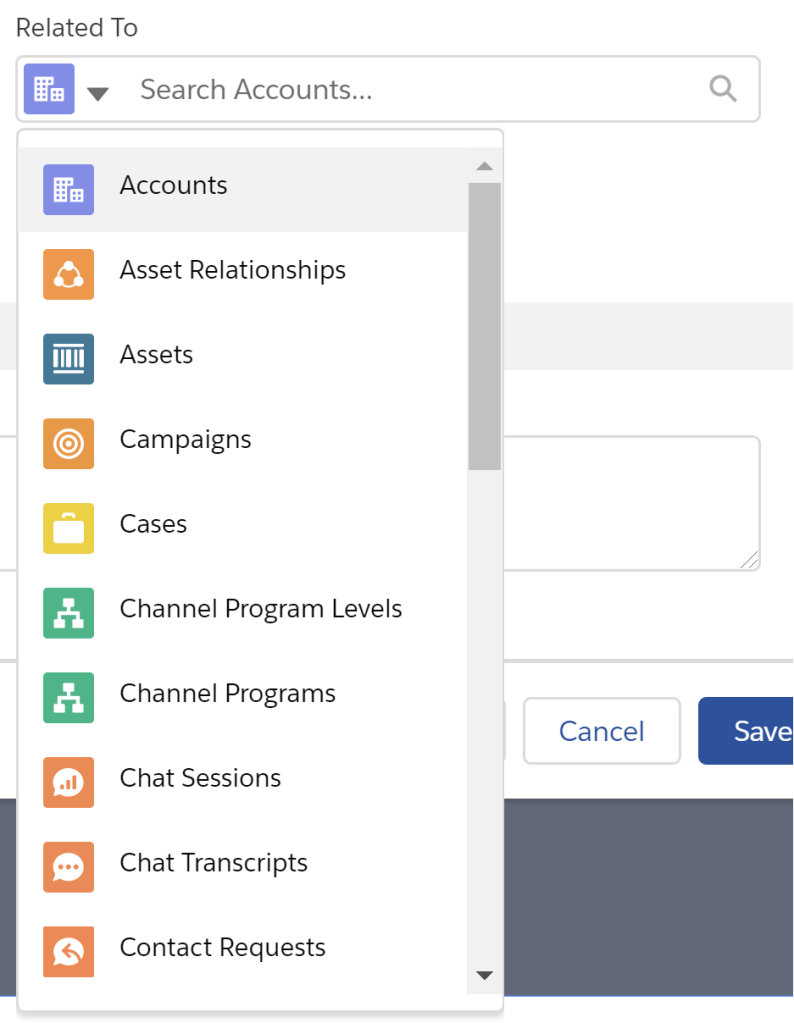 - Related To (WhatId) – this field can specify a record from any object that allows activities