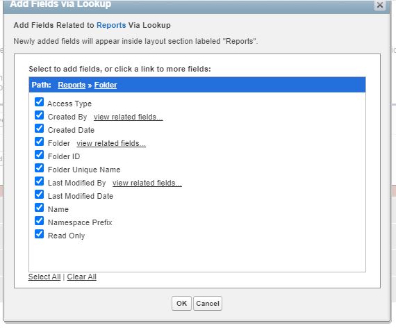 Folder maintenance is also a monotonous task. Identifying folders that can be consolidated or deprecated can be a bit tricky. One way to do this would be to identify which folders have few reports in them (note: we cannot report on empty folders). Using the same standard report above, we can group and summarize our reports by folder to help identify these. However, what if we wanted more information on the folder itself? We can create a custom report type using Reports as the primary object and through editing the layout we can add additional fields via a lookup from the Folder. This can provide valuable information such as who created the folder and when, as well as whether the folder is private, shared or public. A good use case is to evaluate Folders when someone leaves a company to determine whether these reports and Folders should remain or be re-purposed. This type of report can also be used when determining access level changes for the data to audit which Folders and Reports are accessible either as public or shared versions. The same types of reports can be used to manage Dashboard Folders as well.