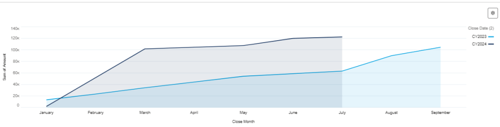 Recently I was taking a look at the Report and Dashboard topic in the Trailblazer community and came across a post by someone struggling to produce a Report. They were trying to show a cumulative line chart to broke down sales by month comparing this year to last year. The goal was to be able to show how much was sold cumulatively through July or last year compared to July of this year. This should be done via line graph. The timing of this post was impeccable as I had just created the exact same Report. As a Co-Organizer of Northeast Dreamin‘ (shameless plug), which a community event in New Hampshire October 15-16, 2024, I was presenting some metrics to our team to see where we were for sponsor commitments compared to this time last year. The Report that I used to show this was exactly the same as needed by the post I came across. Let’s take a look at how we do this.