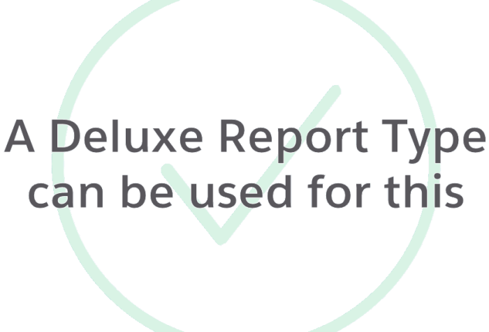 While it may take some time to clean up existing reports, you can start enjoying the benefits of deluxe report types right away. Only create new reports with deluxe report types (or other styles with a better understanding of how object relationships work).